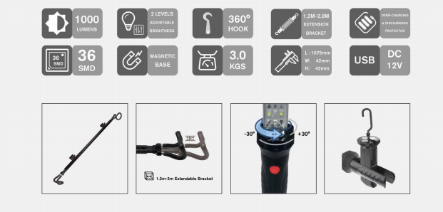 Magnetic 40SMD 1000LM Car Repair Inspection Light Rechargeable Under Bonnet Work Light